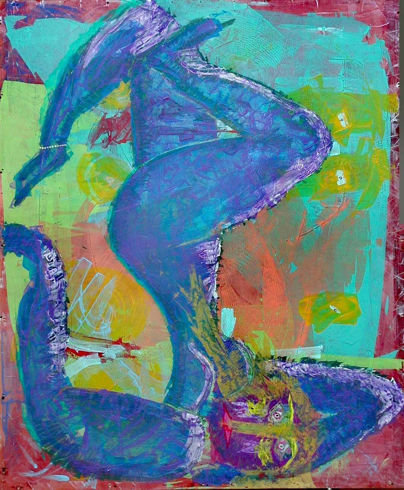 Most of his art is paint with oils and acrylic. The use of bright and vibrant colours instils the balance between the tangible and spiritual.