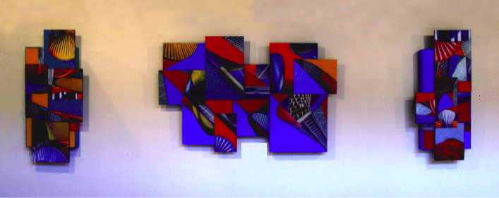 His most recent exhibition called Cyberurban is a magnificent explosion of colour, shapes and textures, harmoniously mixing very intense flat colours with graphics. In this unique collection, he combines different frames and unconventional formats: circular, triangular, and also multiple achieved with the use of different superimposed supports, thus cutting edges, and creating different planes.
