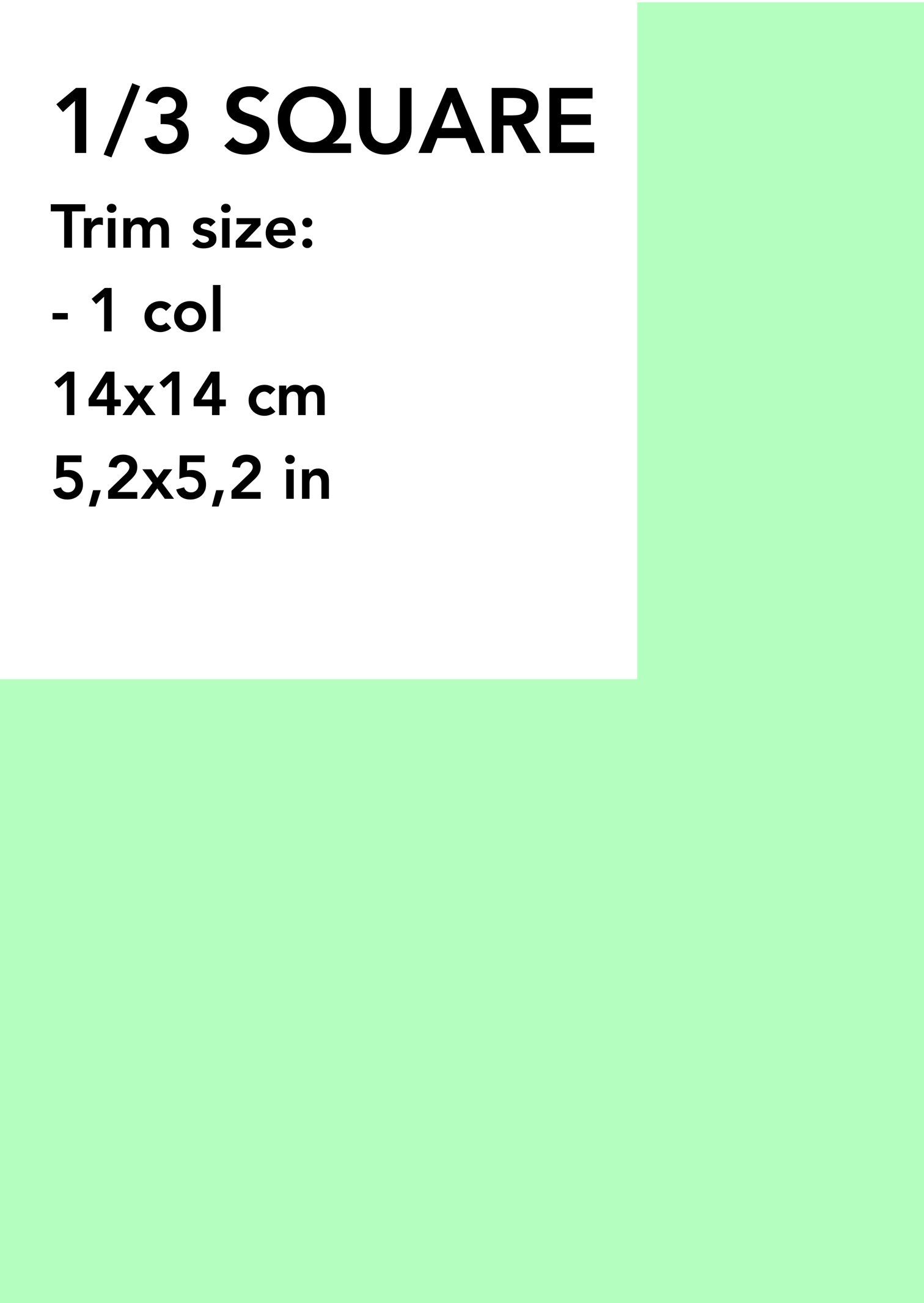 - (2) 1/3 SQUARE: Trim size:- 1 col 14x14 cm (5,2x5,2 in) € 850 (US$ 917)*