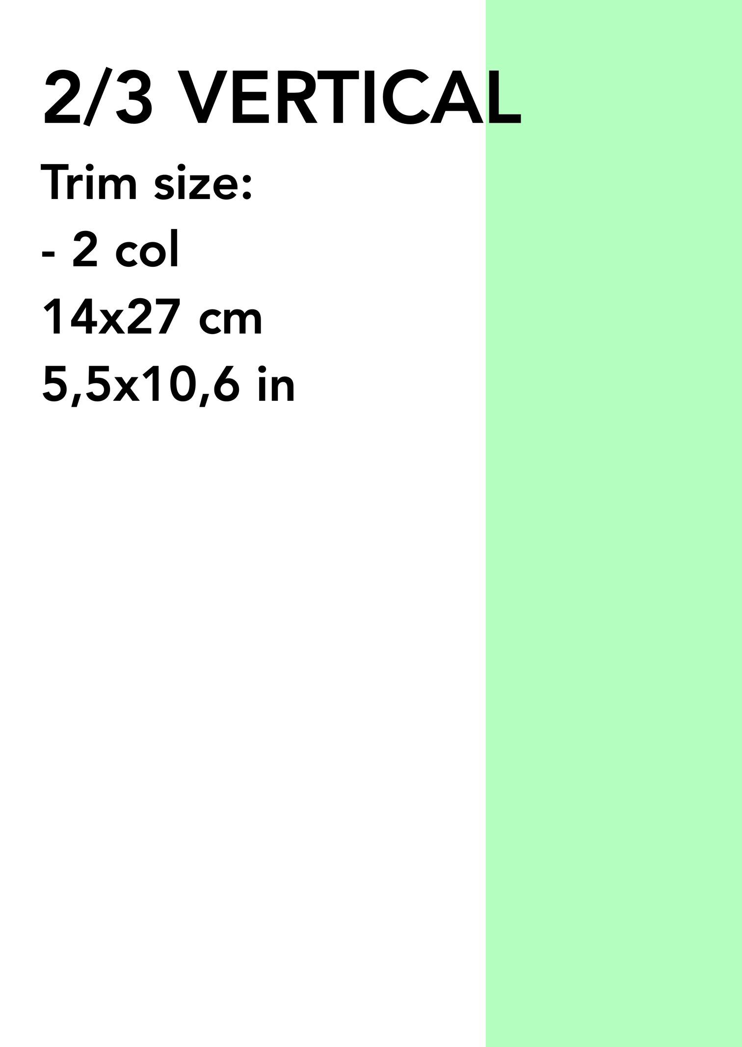 - (8) 2/3 VERTICAL: Trim size: - 2 col 14x27 cm (5,5x10,6 in) € 1.100 (US$ 1.187)*