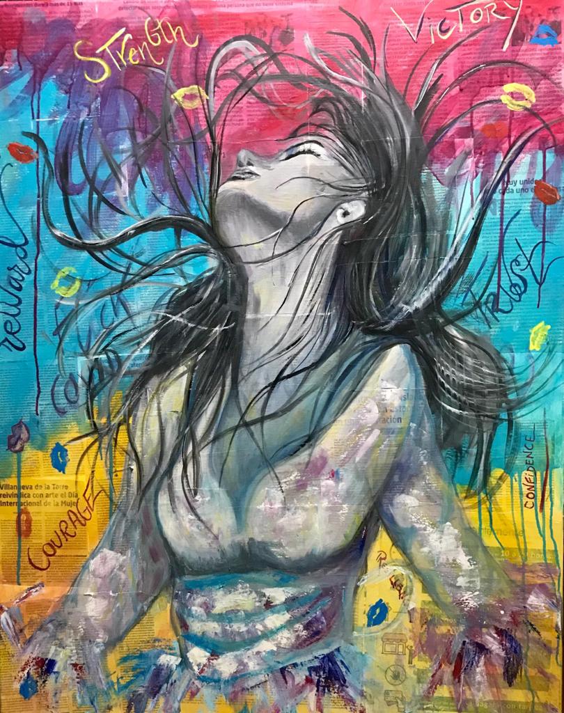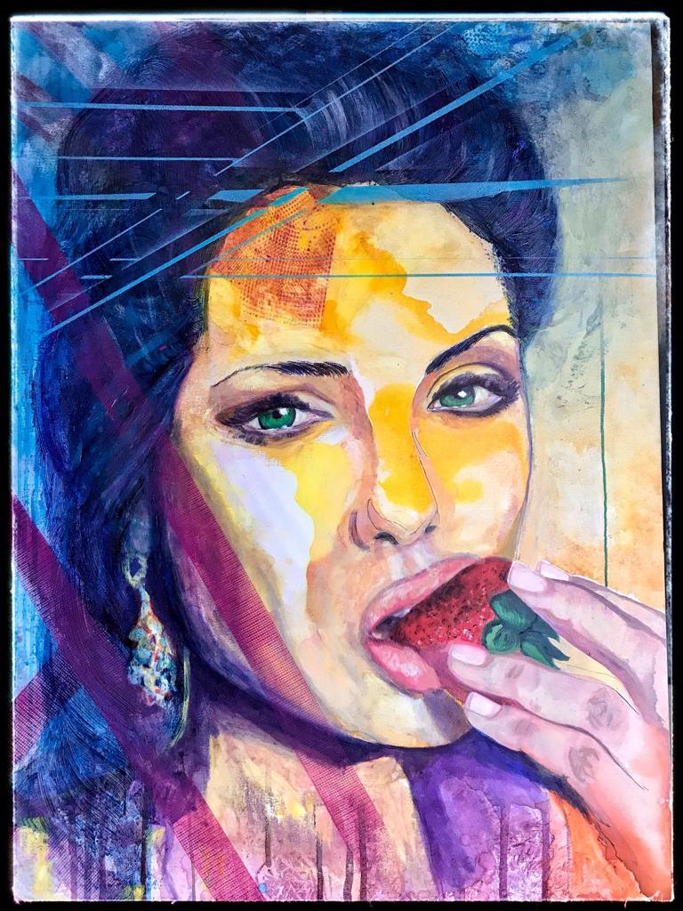 ‘It was in 2017 when I painted my first portrait. It was something that I always wanted to do: express the glance, the feelings, and the emotions that radiate from our innermost being and that sometimes, shiftily, betray us. With my paintings, I try to use art as a communication tool with a social purpose. I try to express my feelings and emotions in my paintings through colour spots and loose brushstrokes. In my recent paintings, I enjoy mixing different materials and techniques, experimenting with the magic of fluids and pouring [and] getting more abstract-figurative effects.’