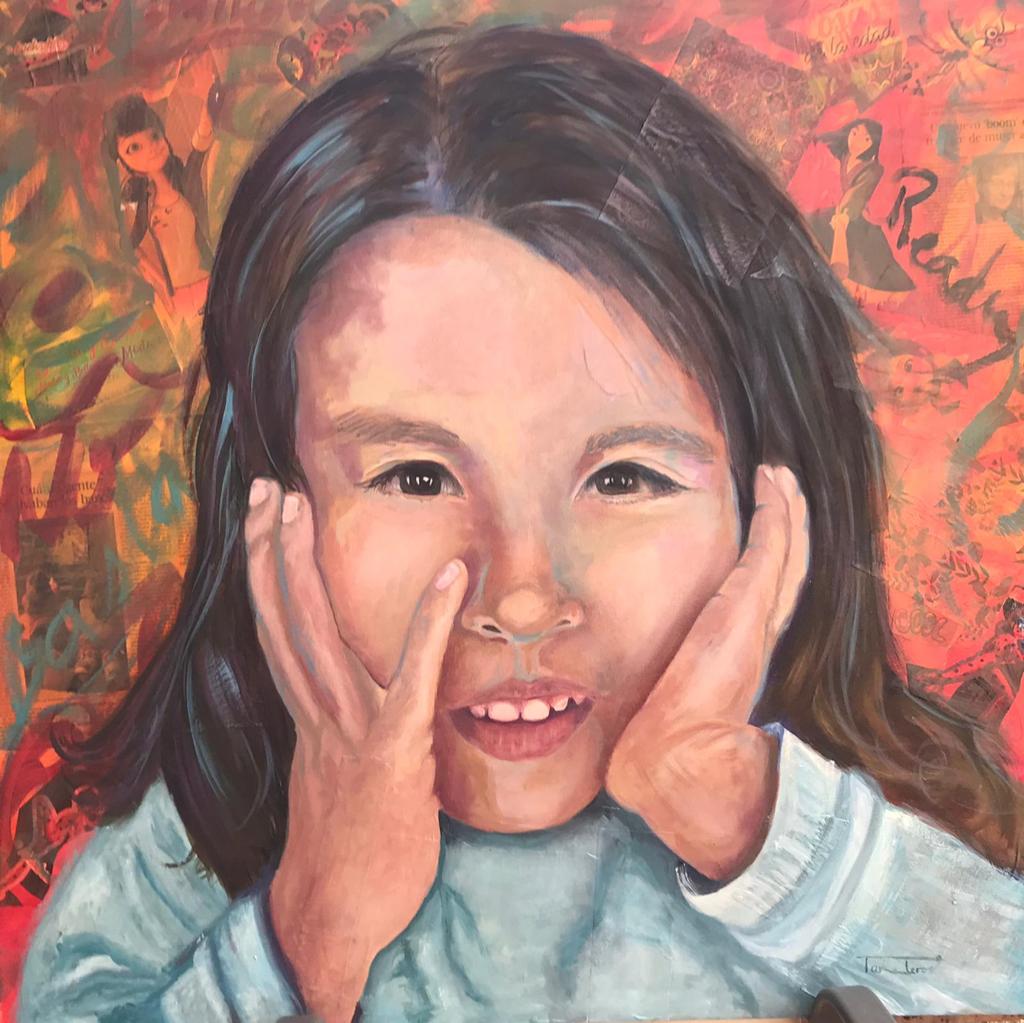 In some phases, I go back to using oil in my paintings before jumping back to reality again, but I ultimately choose spontaneous, fun, and colourful portraits in the end. In these portraits, the lines disappear slightly and are more of a suggestion; the glance is what attaches us to the story and to reality.